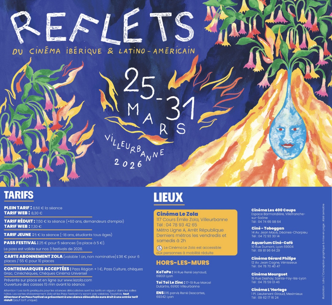Au-delà de l’écran et des salles du Zola, le festival s’étend dans toute la métropole, avec des expositions, des concerts, des collaborations avec l’ENS, et même une grande soirée latine au Toï Toï Le Zinc à Villeurbanne le vendredi 3 avril, pour clore dans la fête cette édition 2026.