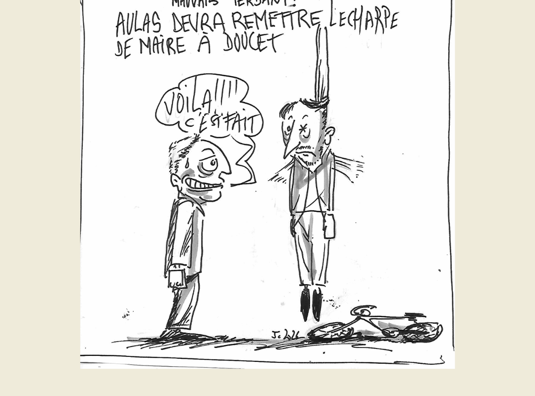 Aujourd’hui, c’est le jour de grâce pour Grégory Doucet, voire la jubilation,puisque c’est son adversaire et le doyen de séance qui lui remet l’écharpe de maire, en l’occurrence Jean-Michel Aulas (Grand Coeur Lyonnais).
